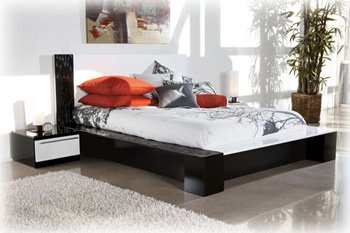 Series Features: 2-tone high gloss white& black with wave pattern 3D press material for smooth durable edges. Asymmetrical contemporary design features smoke glass tops. Upholstered headboard includes a large storage cavity accessible behind the headboard cushion. The 4 drawer chest has a door on the left side with a hanger bar and adjustable shelves. Long chrome bar pulls accentuate the horizontal lines. The -54 requires the B100-13 queen roll slats; the -56 requires the B100-14 king roll slats. Drawers feature smooth replicated maple grain interiors and self-closing, under mount glides.